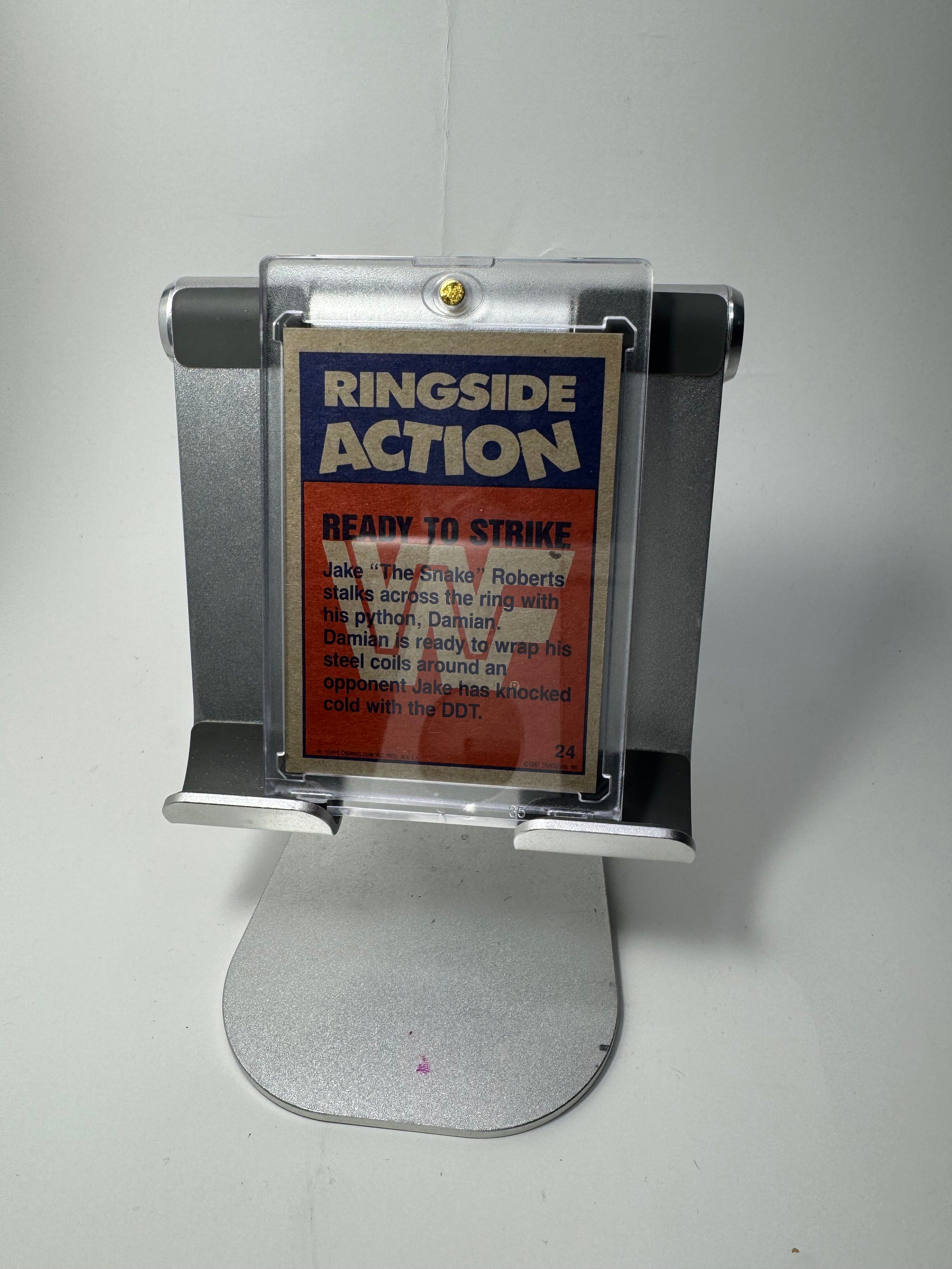 Step into the snake pit with the 1987 WWF Topps Jake “The Snake” Roberts Trading Card #24 Signed by Jake Roberts!