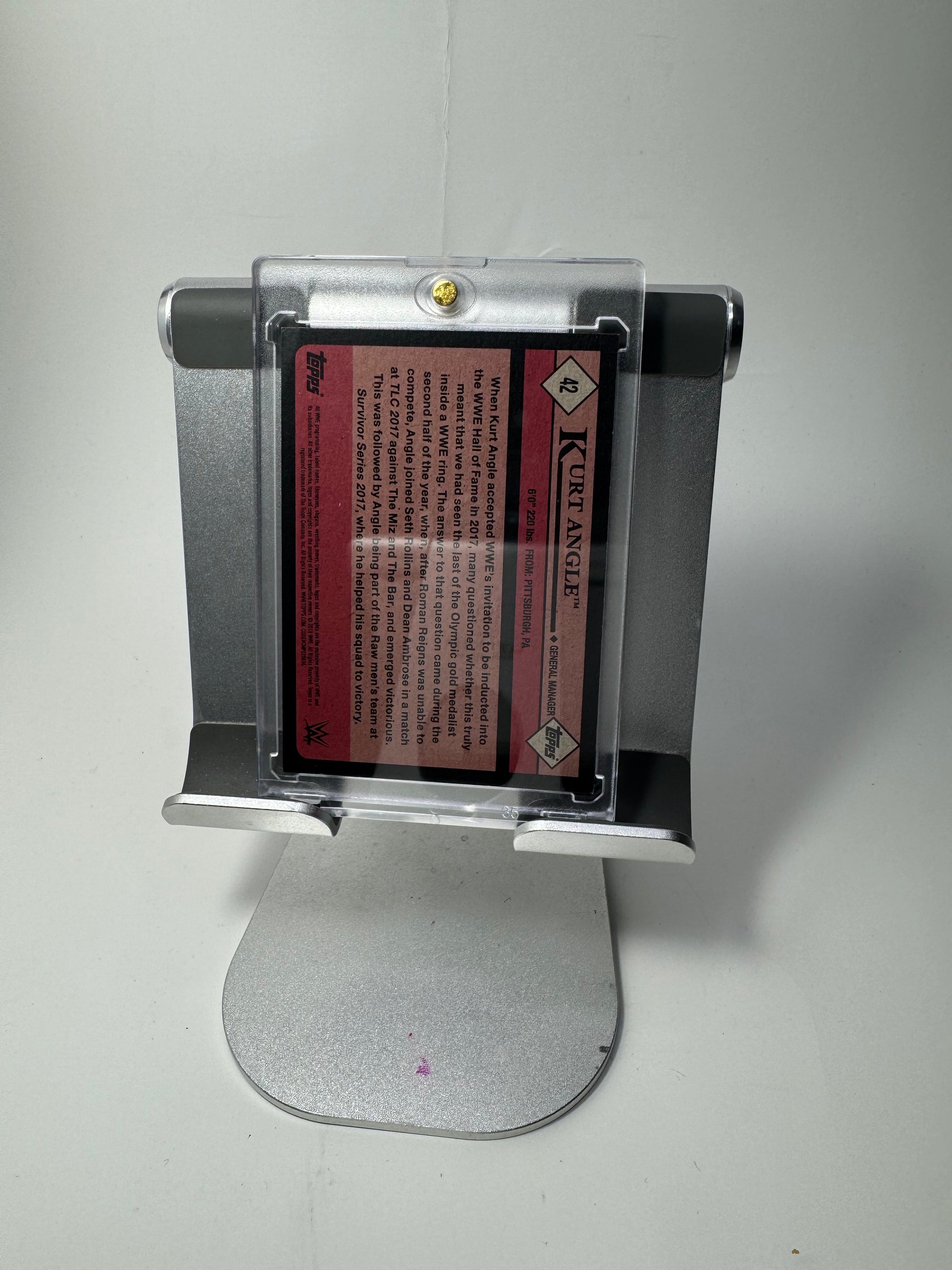 It’s true! It’s true! Add the 2018 WWE Topps Kurt Angle Trading Card #42 Signed by Kurt Angle to your collection!
