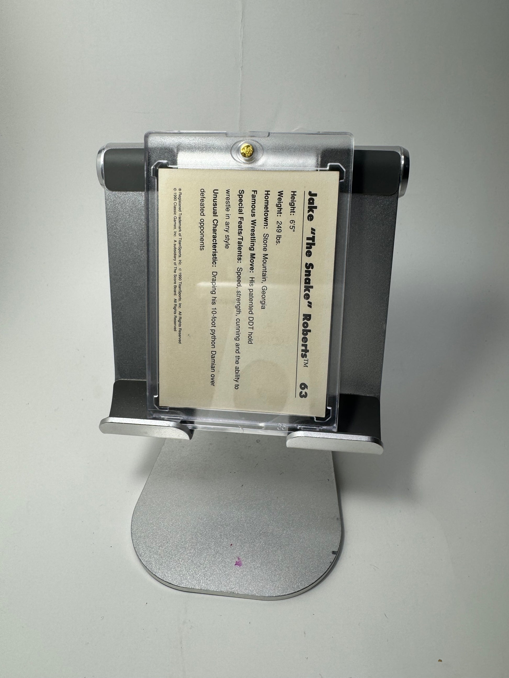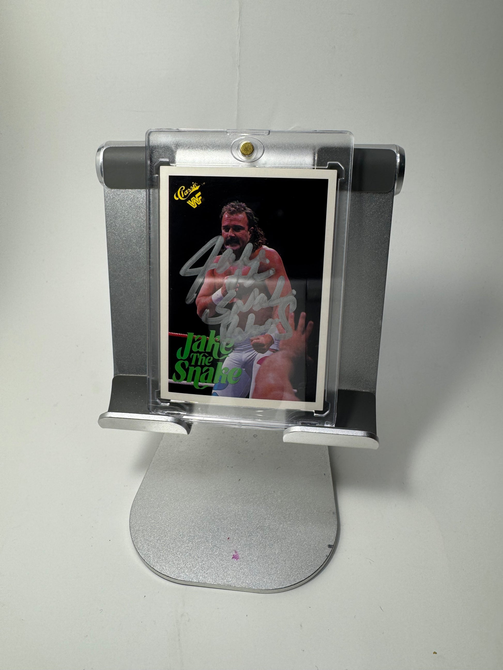 Step into the snake pit with the Classic WWF Jake “The Snake” Roberts Trading Card #63 Signed by Jake Roberts!