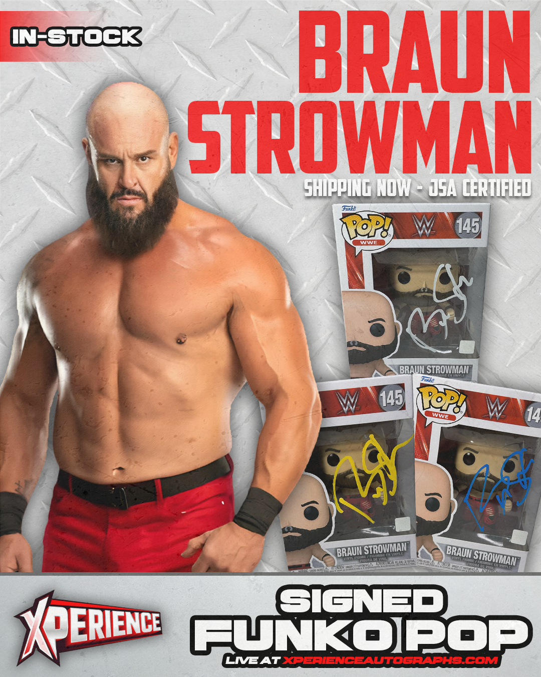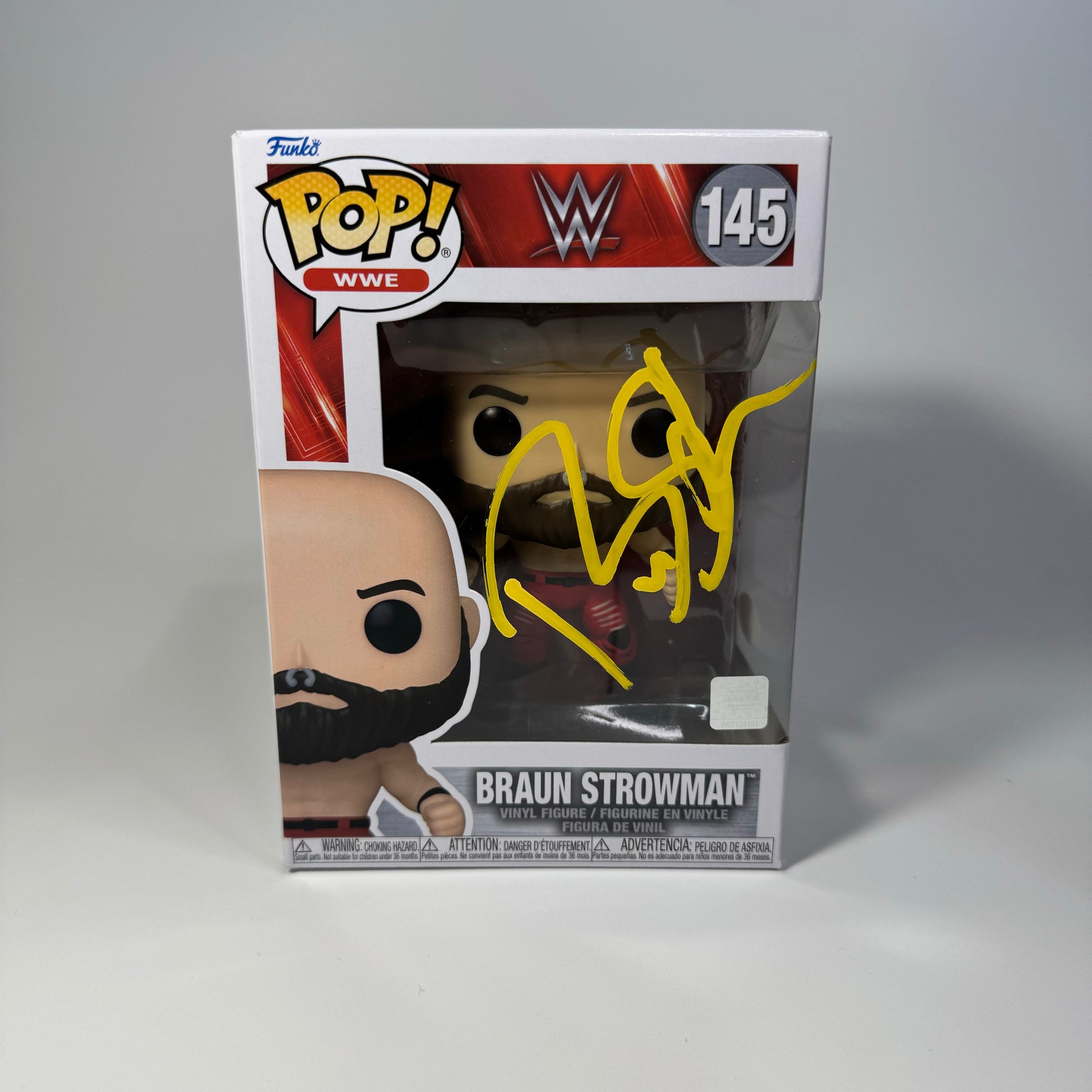 Bring the “Monster Among Men” to your collection with this Funko Pop! Braun Strowman #145, signed by wrestling superstar Adam Scherr! Customize your collectible with your choice of signature color: bold white, vibrant blue, striking yellow, or eye-catching orange paint pen. Each autograph is JSA certified, ensuring authenticity and adding incredible value to this must-have item. Whether you’re a fan of Braun Strowman’s epic WWE moments or a Funko Pop! collector, this signed piece is the ultimate addition to your collection. Don’t miss out—make this larger-than-life collectible yours today!