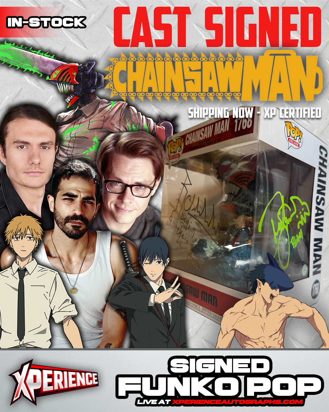 Unleash the power of Chainsaw Man with this Funko Pop! Chainsaw Man #1768, signed by Ryan Colt Levy (Denji), Derick Snow (Beam), and Reagan Murdock (Aki Hayakawa)! Each autograph is XP Certified, ensuring authenticity and collector-grade value. Featuring signatures from the incredible voice cast that brought the hit anime to life, this multi-signed Pop is a centerpiece for any Chainsaw Man or anime collection. Don’t miss your chance to own this rare and electrifying collectible!