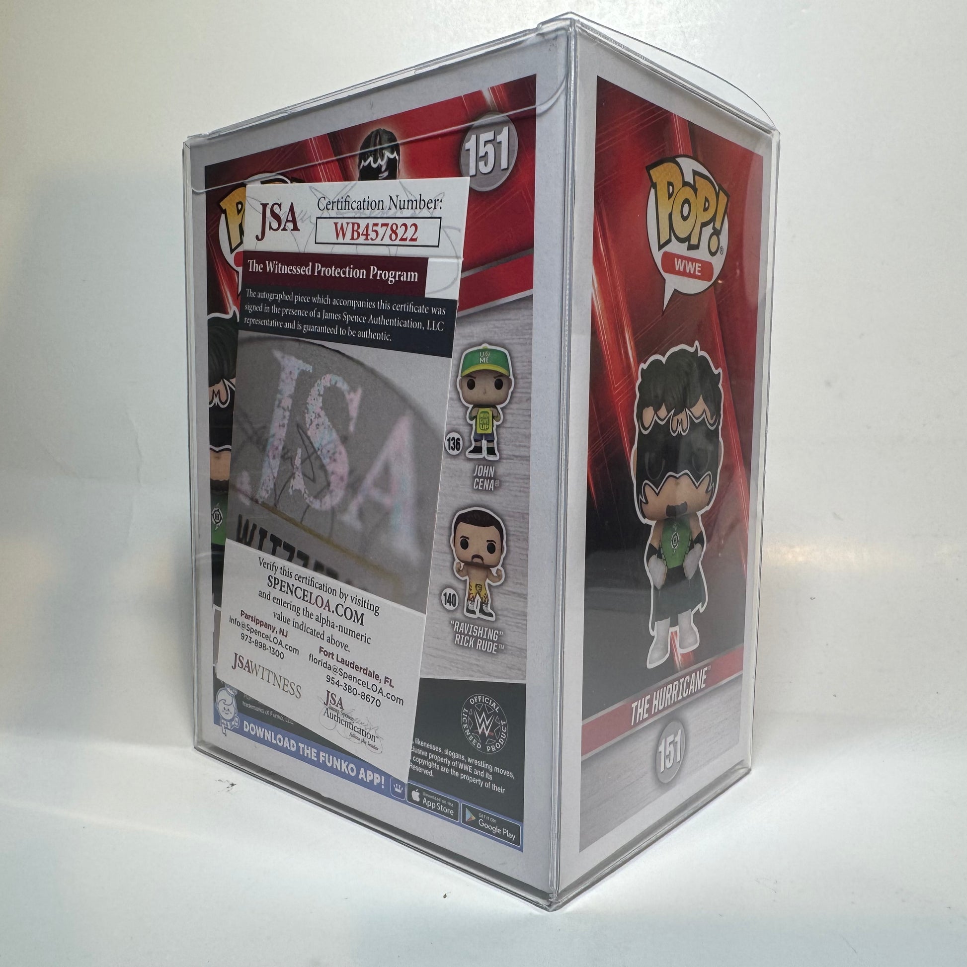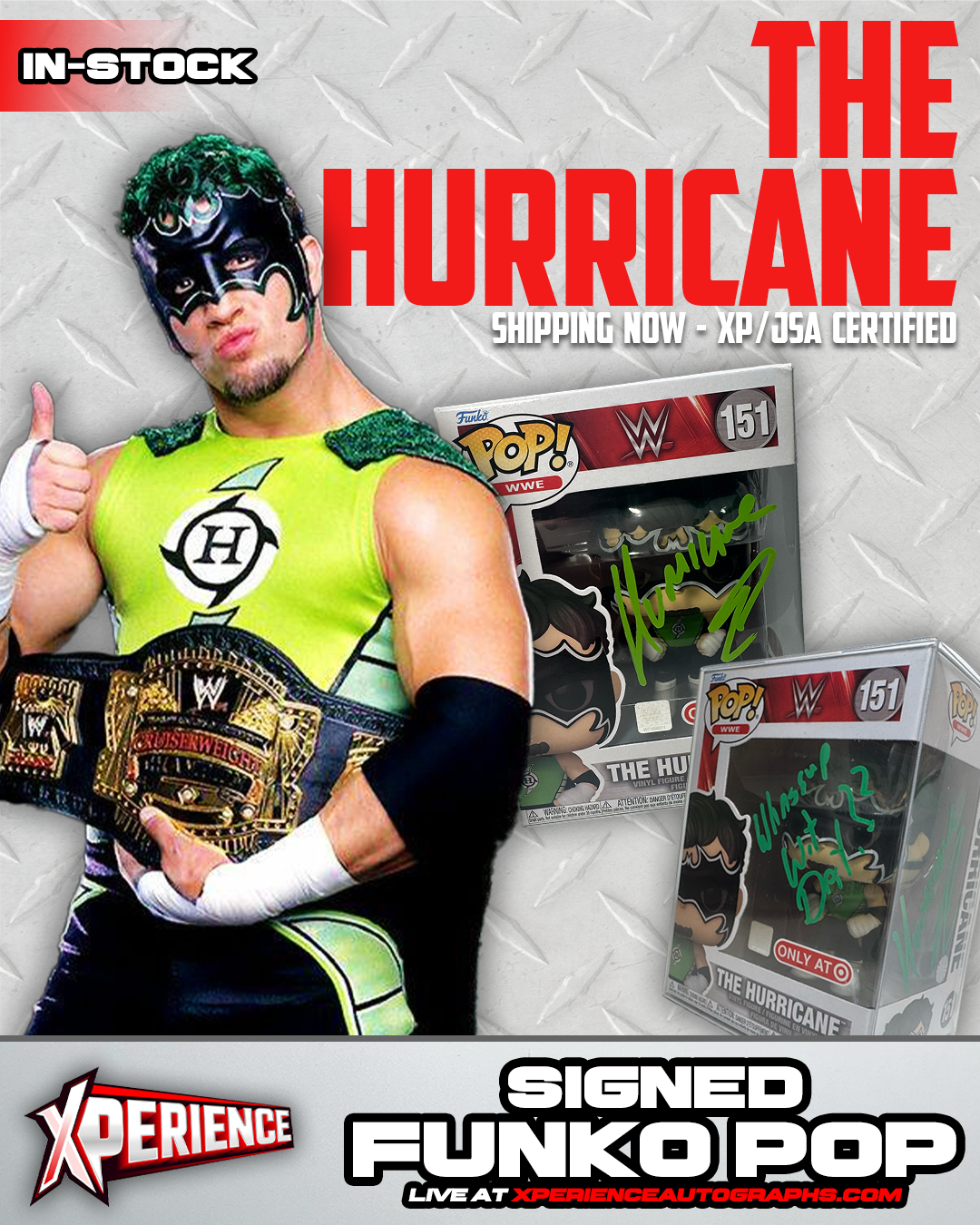 Stand back! There’s a hurricane coming through!” Add a heroic touch to your collection with this Funko Pop! The Hurricane #151, signed by the wrestling icon Shane Helms. Choose between a bold green or clean white paint pen signature, each adding a dynamic flair to this electrifying piece. Each signed Funko Pop! is XP/JSA certified, guaranteeing the authenticity of the autograph and elevating its value for collectors. Whether you’re a lifelong fan of The Hurricane’s superhero antics or a dedicated Funko collector, this signed collectible is the perfect way to celebrate one of WWE’s most entertaining characters. Don’t let this one fly away—add it to your collection today!