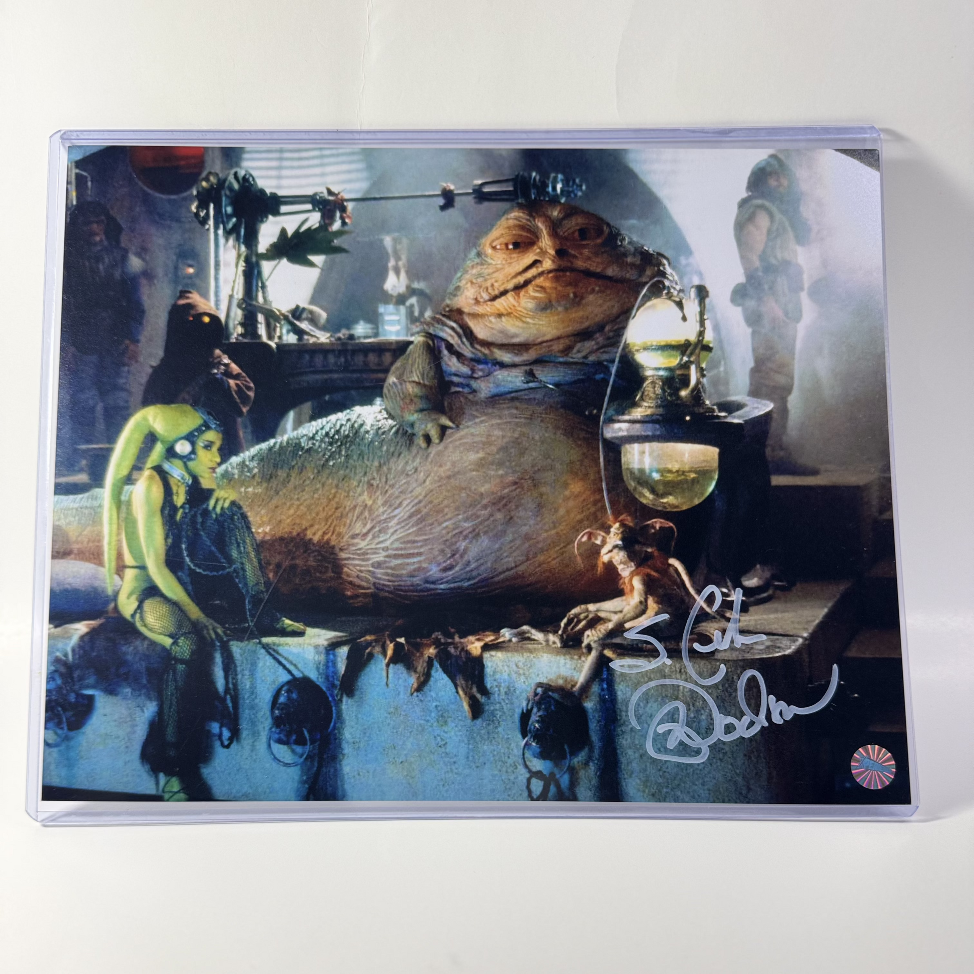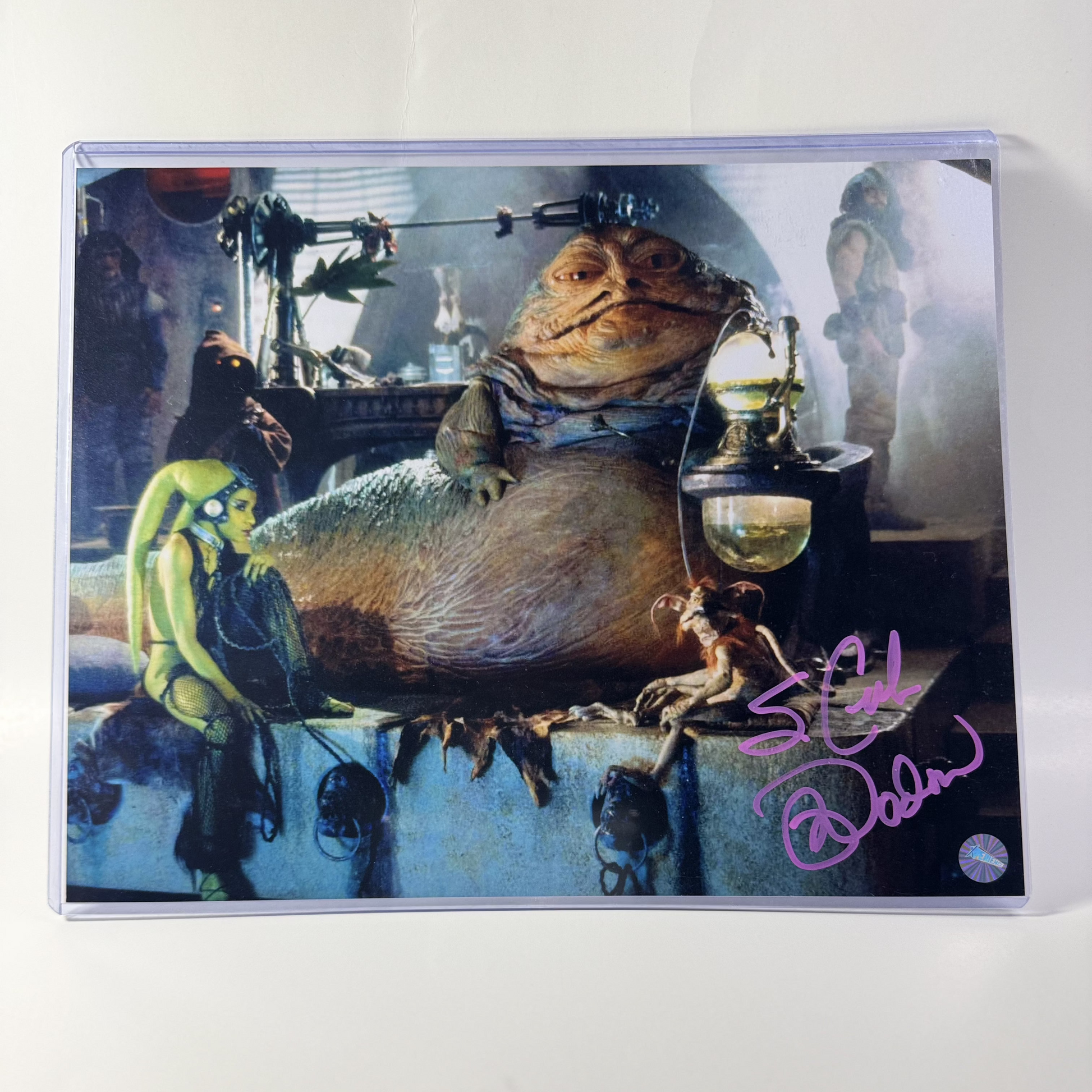 Add a touch of Star Wars history to your collection with this Salacious B. Crumb 8x10 Print, signed by the late Mark Dodson, the legendary voice behind Jabba the Hutt’s mischievous sidekick. As a tribute to his incredible talent and legacy, this collectible is a must-have for any Star Wars fan. Each autograph is XP Certified, ensuring authenticity and preserving the memory of this iconic character and the man who brought him to life. Don’t miss the chance to honor a true legend—secure this special piece for your collection today.